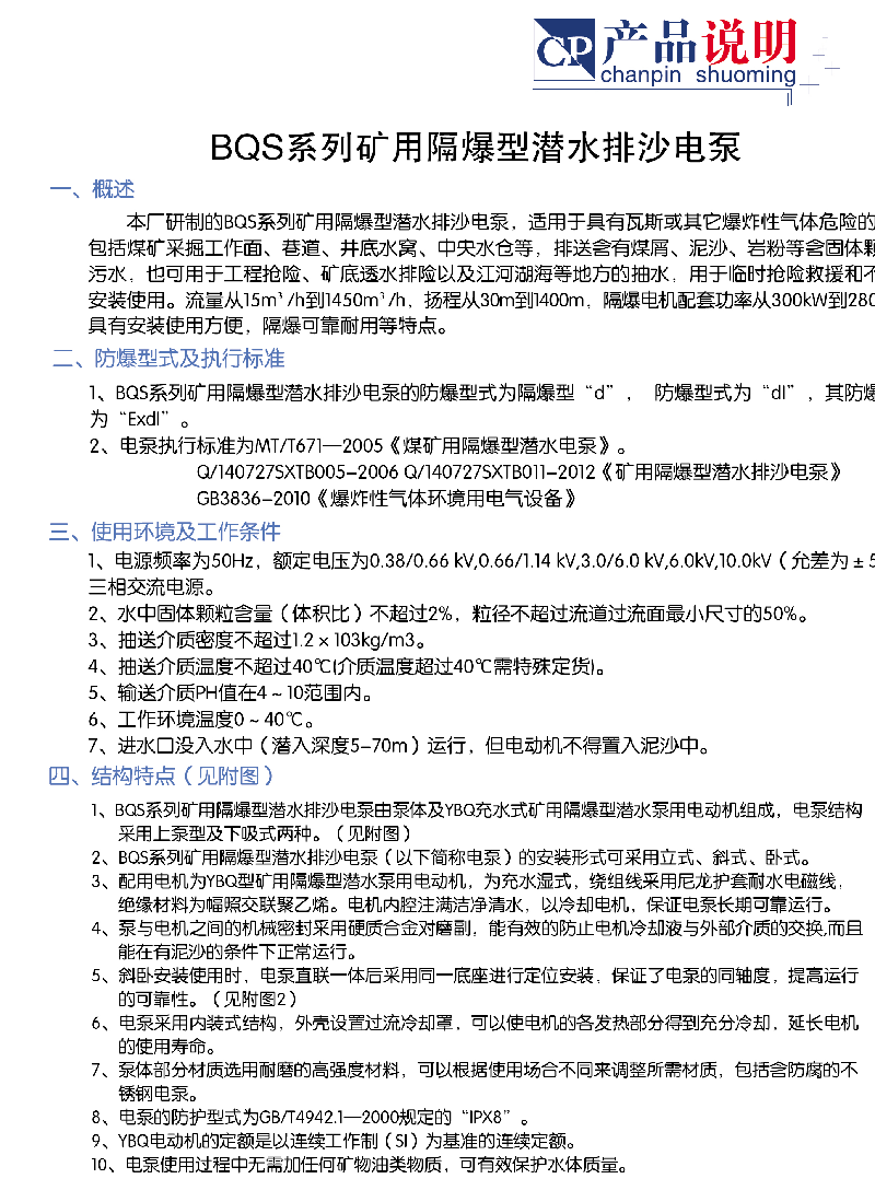 BQS礦用隔爆型潛水排沙電泵